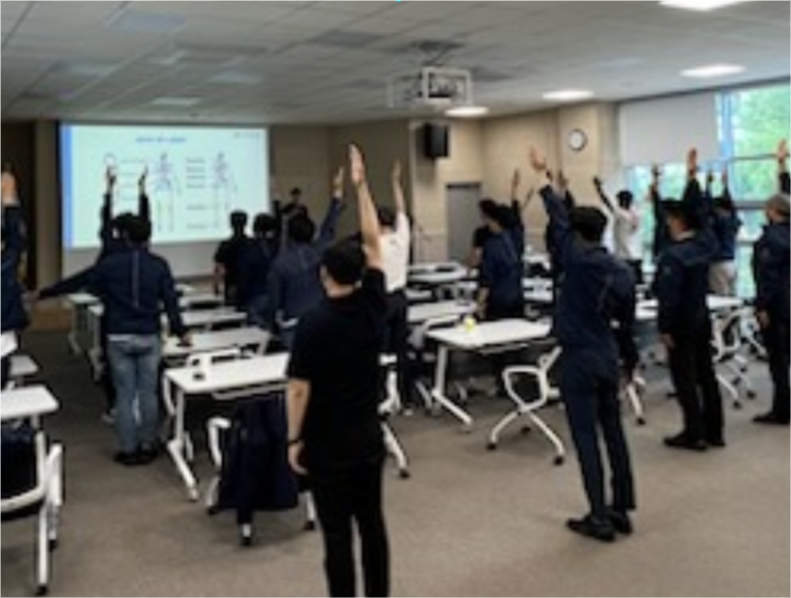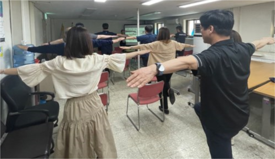 단체운동, 레크레이션, 소도구 운동, 오피스 필라테스 등 전신 유산소운동과 근력운동을 병행해서