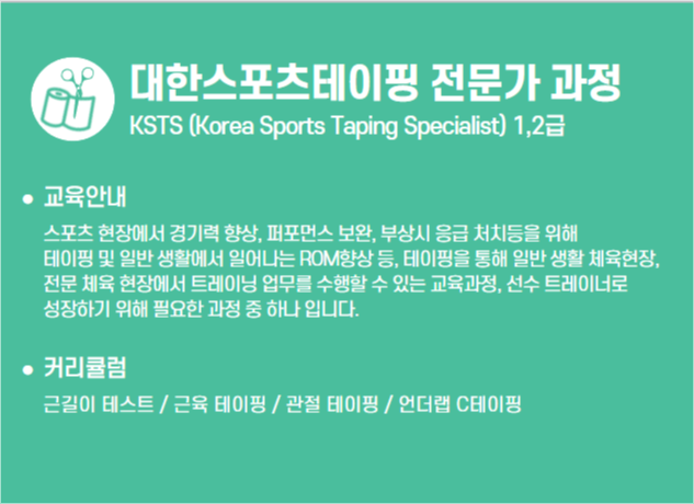 선수 트레이너로 성장하기 위해 필요한 과정 중 하나 입니다.